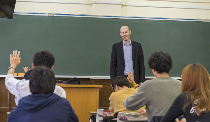 また、国内一流の質の高さを保持するために、受け入れる学生数を抑制しています。それぞれの専門領域において、少人数の学生ひとりひとりを指導する独自のカリキュラムを設定。よく知られる外国語教育の充実はもちろんのこと、どの学科でも、少人数のゼミナール、長期にわたる卒業論文指導など、ひとりひとりを大切にする教育(cura personalis)がおこなわれています。