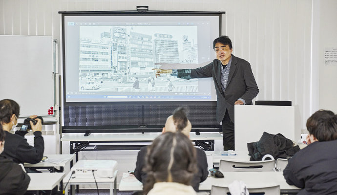 指導するのは業界での豊かな経験を持つ先生たち。そのひとり、芸能史・アイドル史が専門の西条昇教授は、放送作家とお笑い評論家の経歴を持ち、ゼミナールではエンターテインメントをアカデミックに楽しめるイベントを開催。この特別講義とウォークツアーをパッケージにしたイベントは、学生が企画・運営しています!