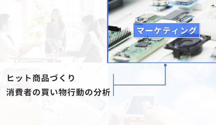マーケティングでは、ヒット商品づくりや消費者の行動分析を行います。