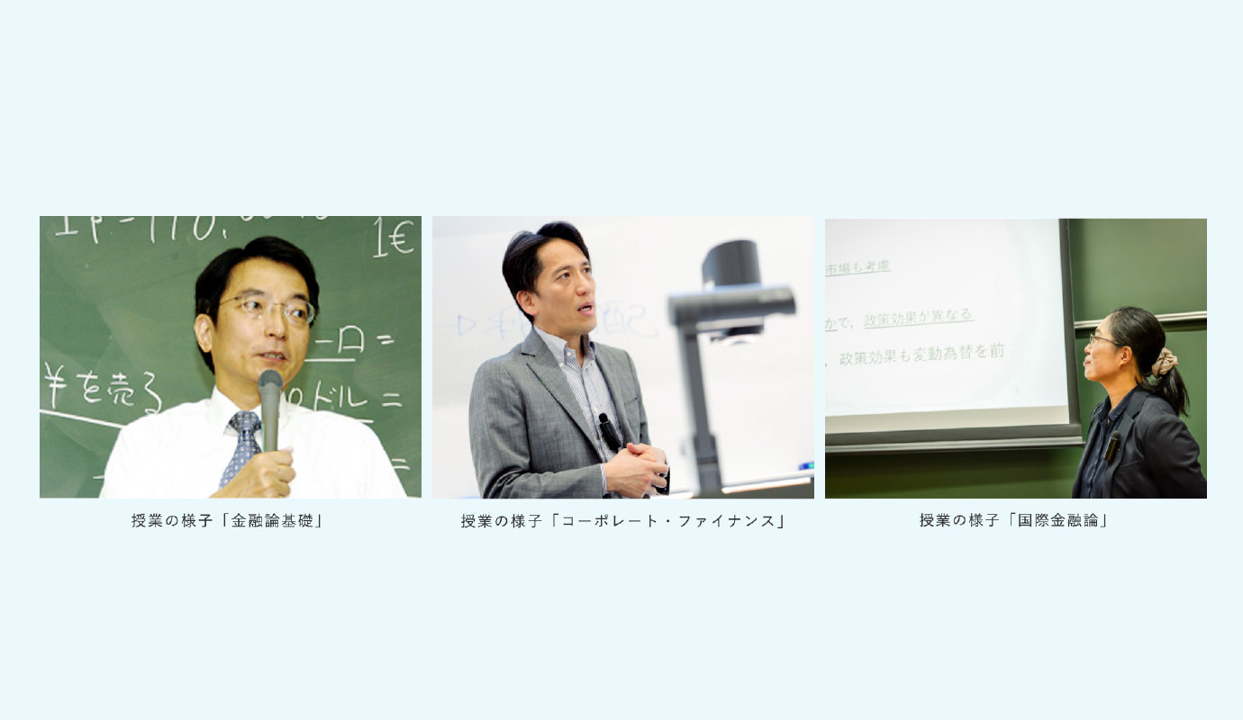 金融コースは、「金融・財務への深い理解」と「金融・財務に直結する資格取得」を軸に、金融機関や企業の財務担当への就職をめざすコースです。