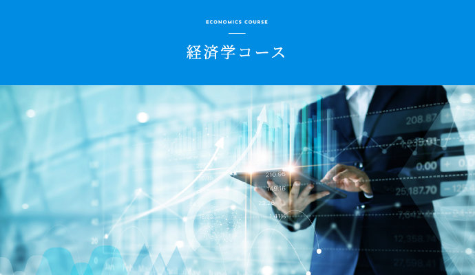経済学コースは、経済学を広く深く学ぶコースで、将来やりたいことをこれから見つけていきたいという方や公務員志望の方におすすめです。