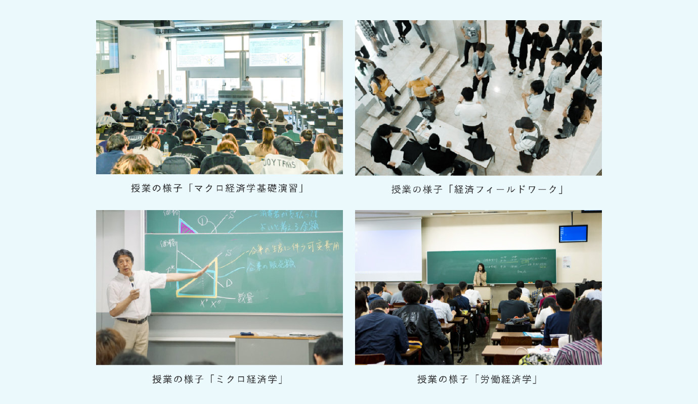 商学部や経営学部でも金融や財務を学ぶことができますが、経済学を軸に体系的に学べるのがこのコースの強みです。
